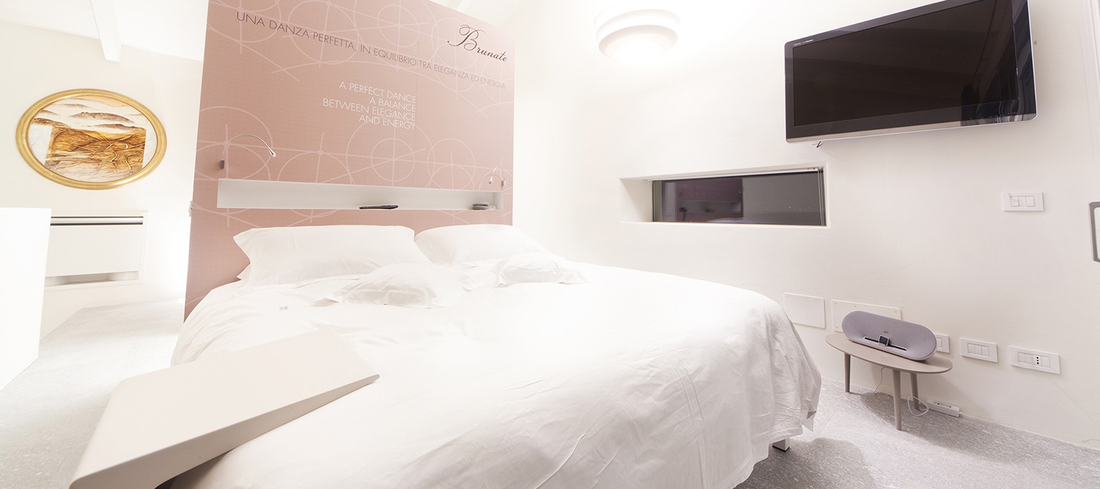 Brunate è ideale per gli amanti del design e dei particolari che rendono unica questa suite dal sapore giovane e trendy. Il balcone direttamente sulla piscina e con una vista mozzafiato sui vigneti circostanti la rende luminosa e molto divertente da vivere.